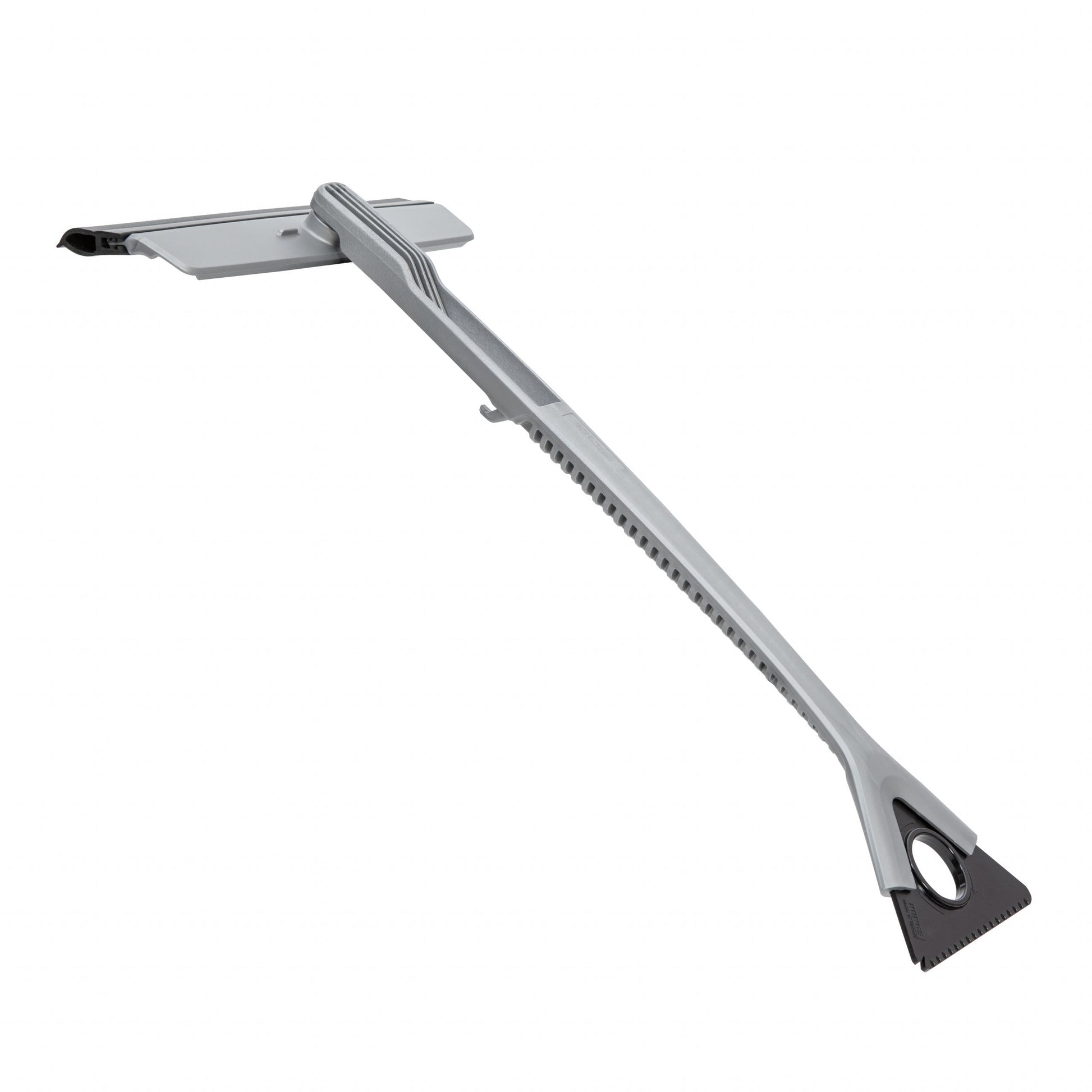 The replaceable ice scraper can also be flipped around. The wiper can be stowed away by turning it from the T position to align with the shaft, with a small hook to lock it in place.