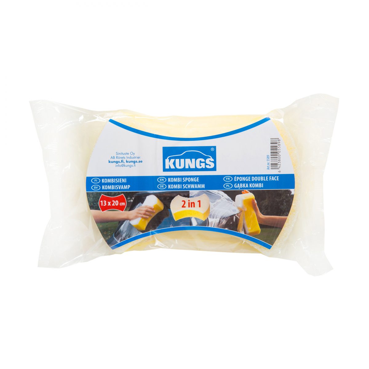 Kungs kombisieni on kaksipuolinen, muotoiltu pesusieni, josta saa hyvän otteen.
