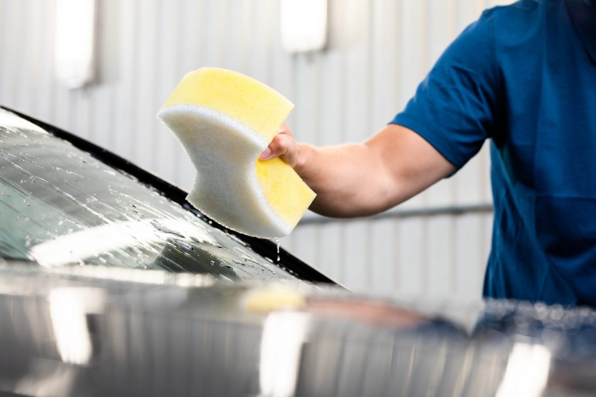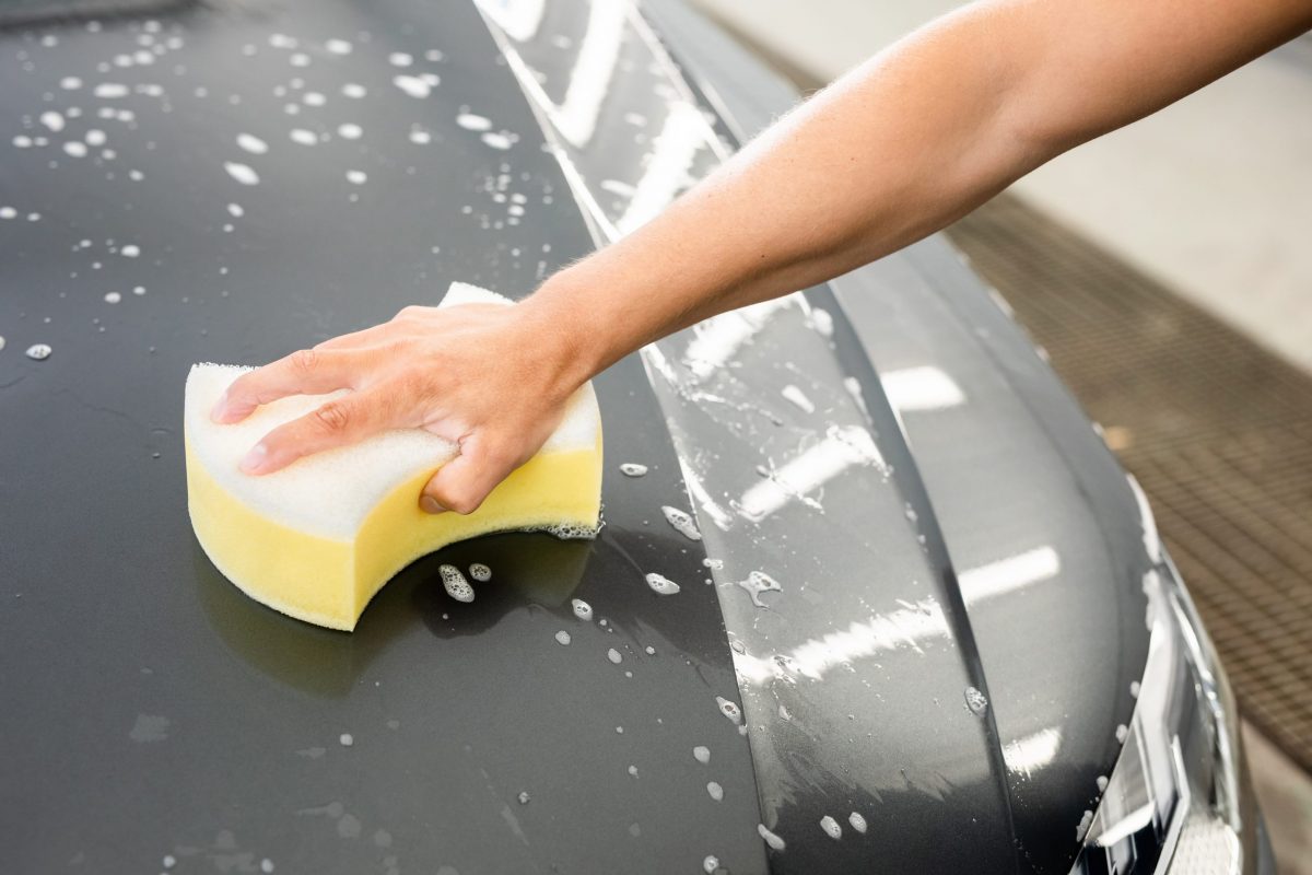 Reilun kokoisen pesusienen pehmeä keltainen puoli sopii maalipinnan pesuun. Pesusienen karkea, valkoinen puoli on tehokas esimerkiksi hyönteisten jäännösten irrottamiseen laseista ja ajovaloista.